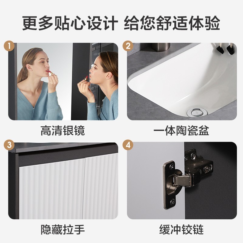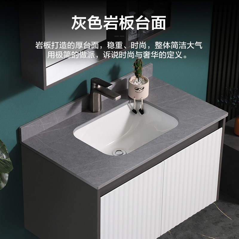 太陽雨浴室柜/主柜80CM/鏡柜/巖板/多層實木/免漆/手感LED智能鏡/YD1006